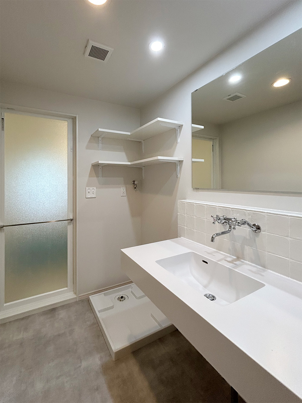 逗子マンションリノベーションOT-HOME 2025-04-26 / komaki マンションリノベーション 進行中のOT様邸キッチン、洗面、UB設備設置完了、周辺タイル完了5月2日 お引渡しに向けて進行中。