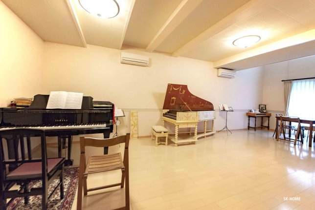 スタジオ兼寝室 吹き抜けの明かりが、ドラムステ-ジを照らし良い感じに。