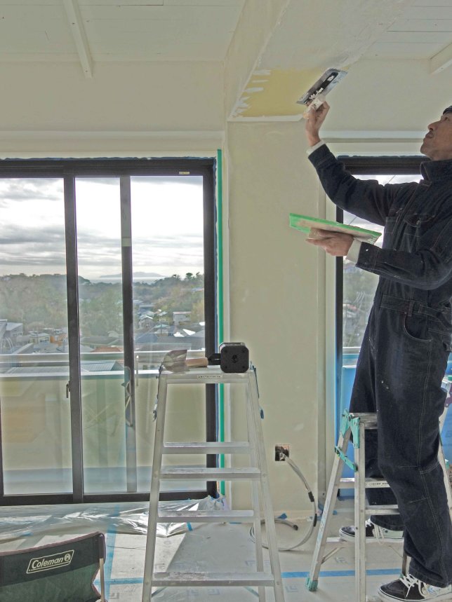 KZ-HOME 片瀬山 FULL-renovation 2020-01-19 / komaki KZ-HOME 片瀬山 FULL-renovation KZ様 お施主様施工 珪藻土仕上げ工程 年始早々から、お休みの度に 現場施工頂いているKZ様 写真からも解る様に 既に職人の領域の雰囲気を感じ取れます。 お昼休憩、海を眺めながら、現場弁当 寡黙に淡々と静かに、作業が進んでおります。 流石、機長様 完璧でございます。 そろそろキッチン設置搬入。