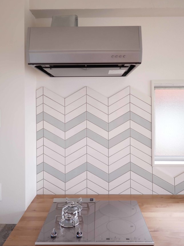 ●キッチンタイル:何度も検討された奥様デザインの Waveパタ-ン