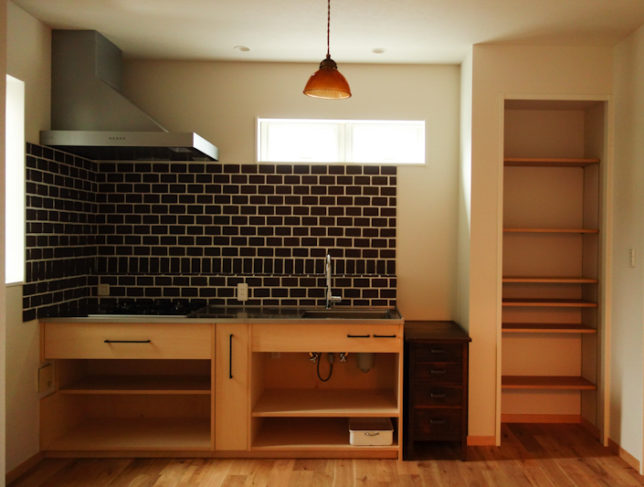 元々のキッチンは、システムキッチンで 対面カウンター式の大き目サイズのキッチンでした。