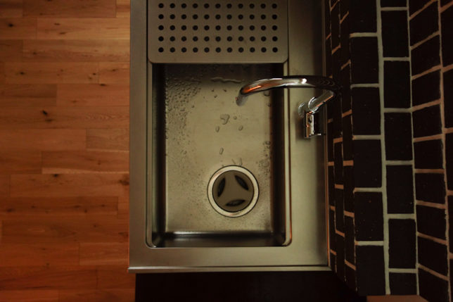 シンク横と シンク正面は 10mmの立ち上がり付き