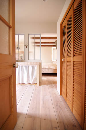 床板は、安藤オリジナル30mm厚杉のビンテージ加工の床材でございます。