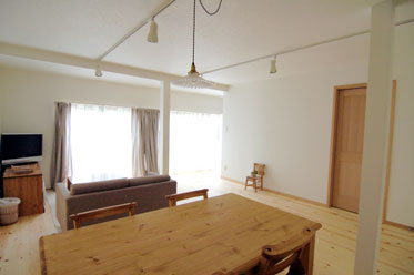 構造上取り外せない柱は残し、広いリビングダイニングにしました。